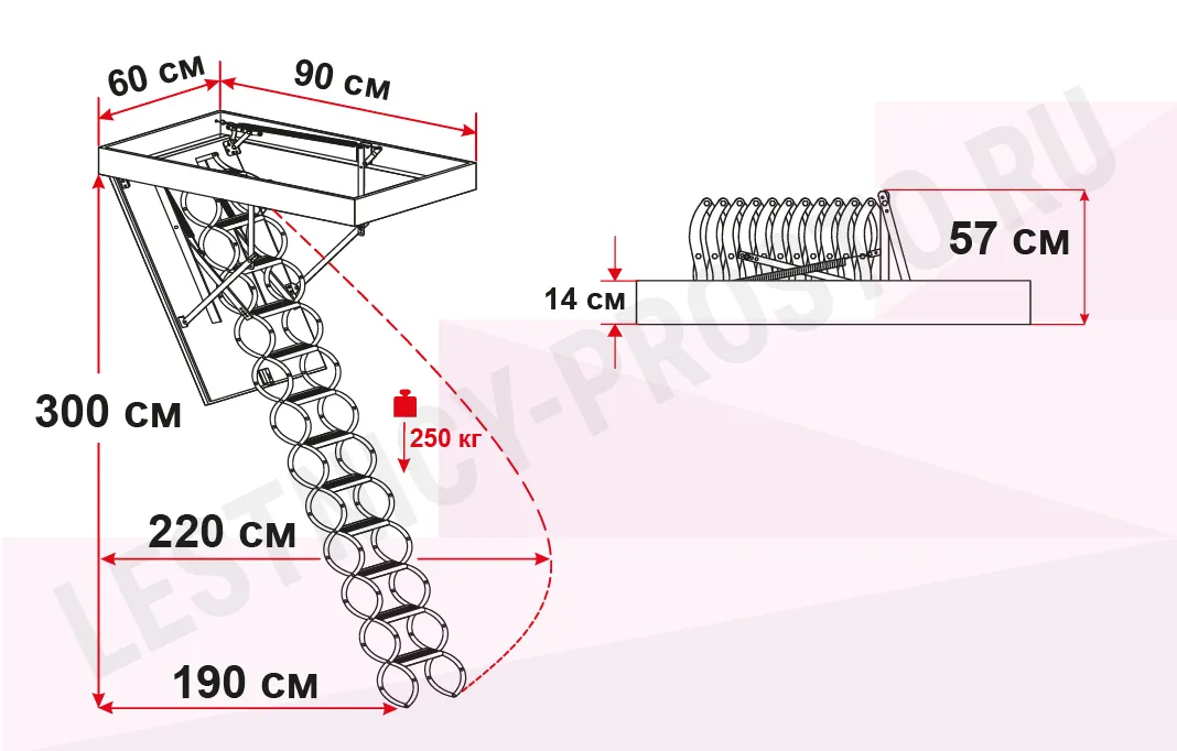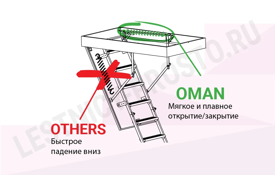 Чердачная лестница с люком OMAN NOZYCOWE LUX 60х90 см, h-300 см