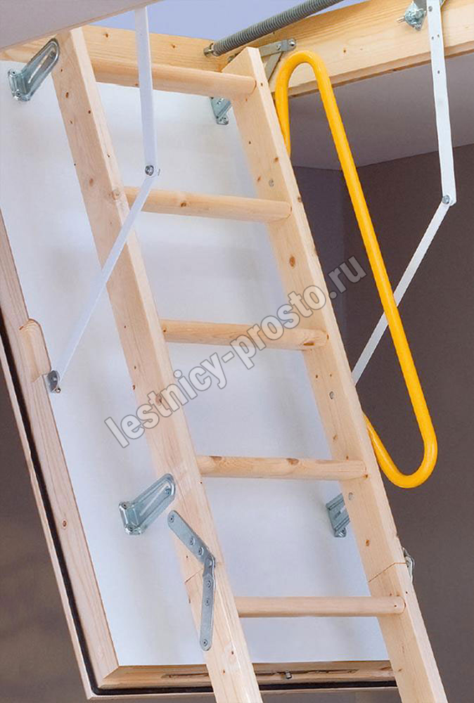 Складная деревянная лестница из 3-х секций с утепленным изолированным люком идеально подходит для крайне холодных чердачных помещений.