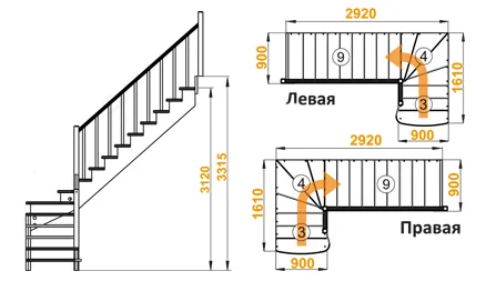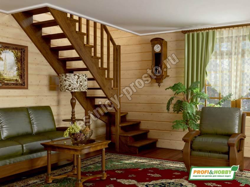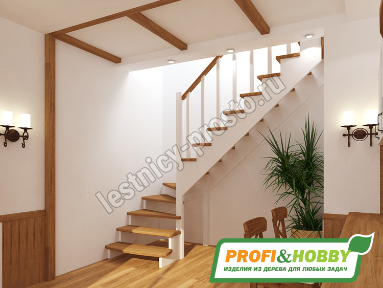 Лестница из сосны К-001М/2 под покраску с подступёнками |