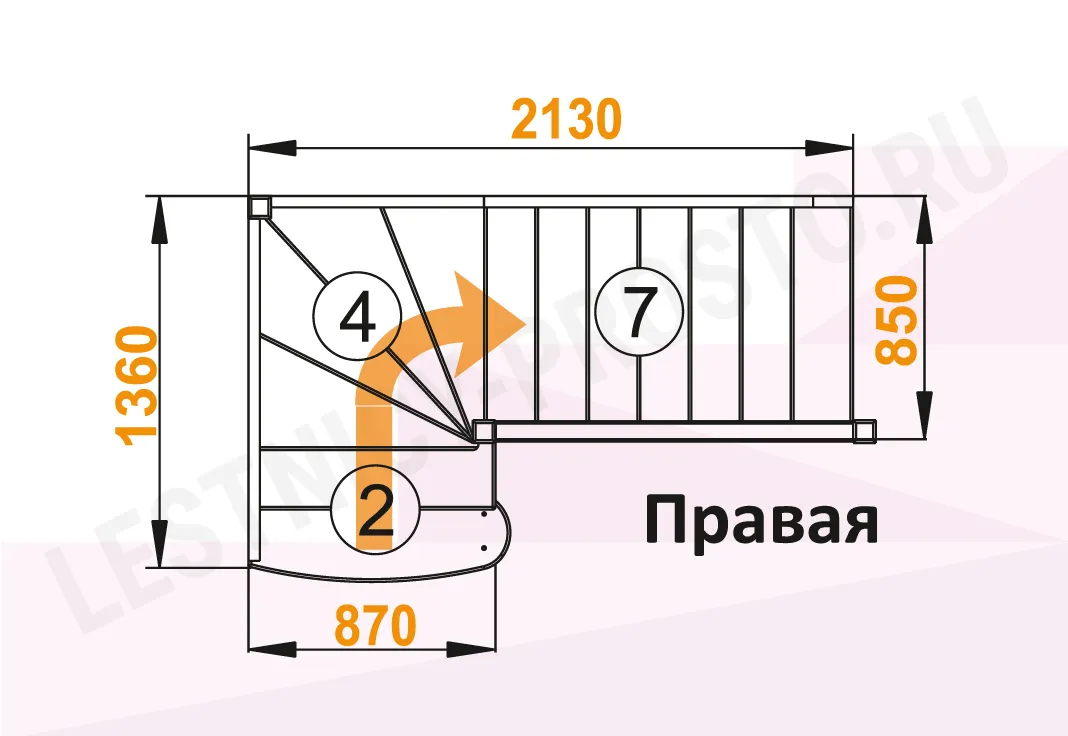 Лестница ЛС-07М/4 с поворотом направо
