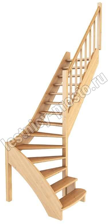 Ступени и поручень лестницы изготовлены из бука, остальные элементы из сосны. Возможно изготовление данной модели полностью из бука. Базовый комплект включает в себя деревянные элементы лестницы и ограждения без какого-либо покрытия.