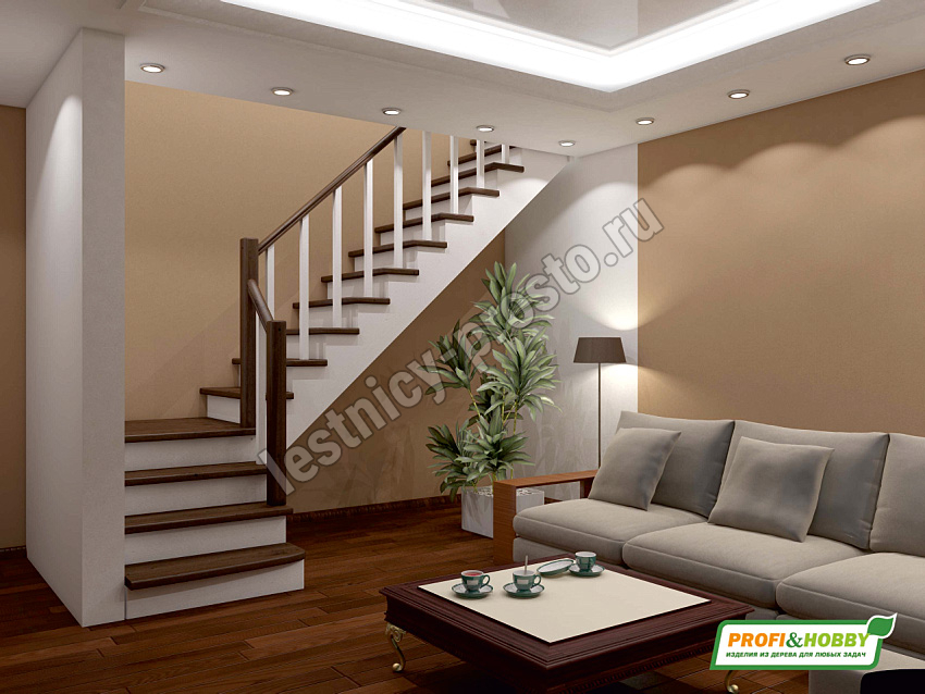 Базовый комплект включает в себя деревянные элементы лестницы и ограждения без какого-либо покрытия. Вы можете заказать у нас покраску лестницы в цвета, отвечающие особенностям вашего помещения.