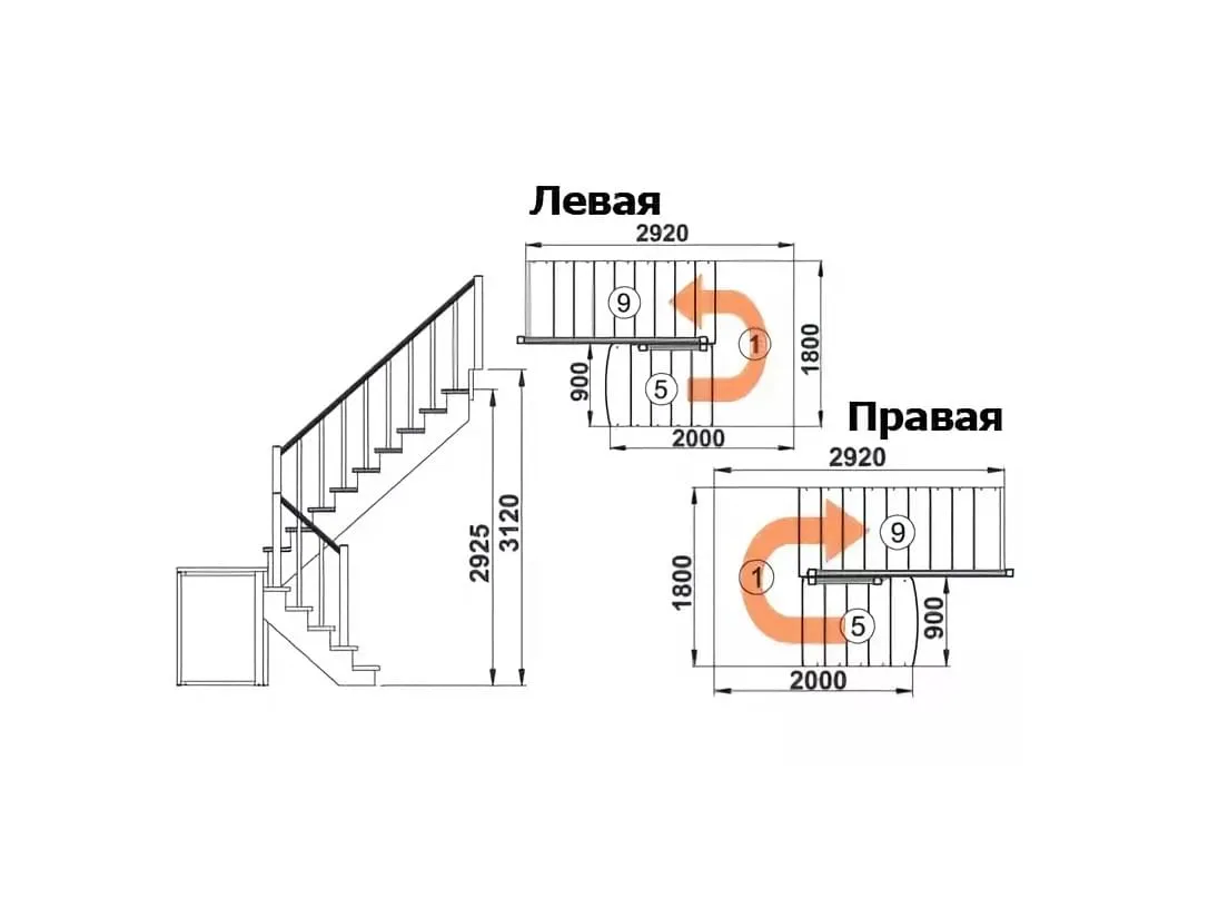 Ступени и поручень лестницы изготовлены из дуба, остальные элементы из сосны.