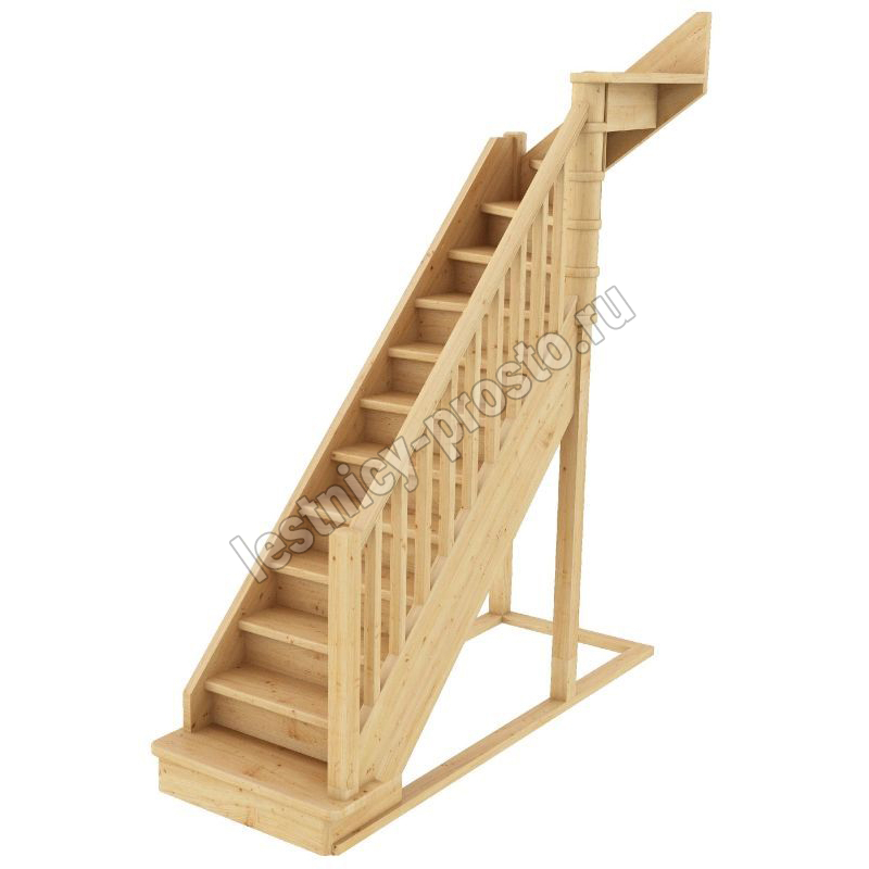 Базовый комплект включает в себя деревянные элементы лестницы и ограждения без какого-либо покрытия.