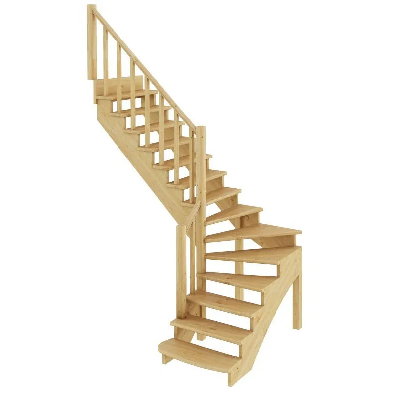 Базовый комплект включает в себя деревянные элементы лестницы и ограждения без какого-либо покрытия.