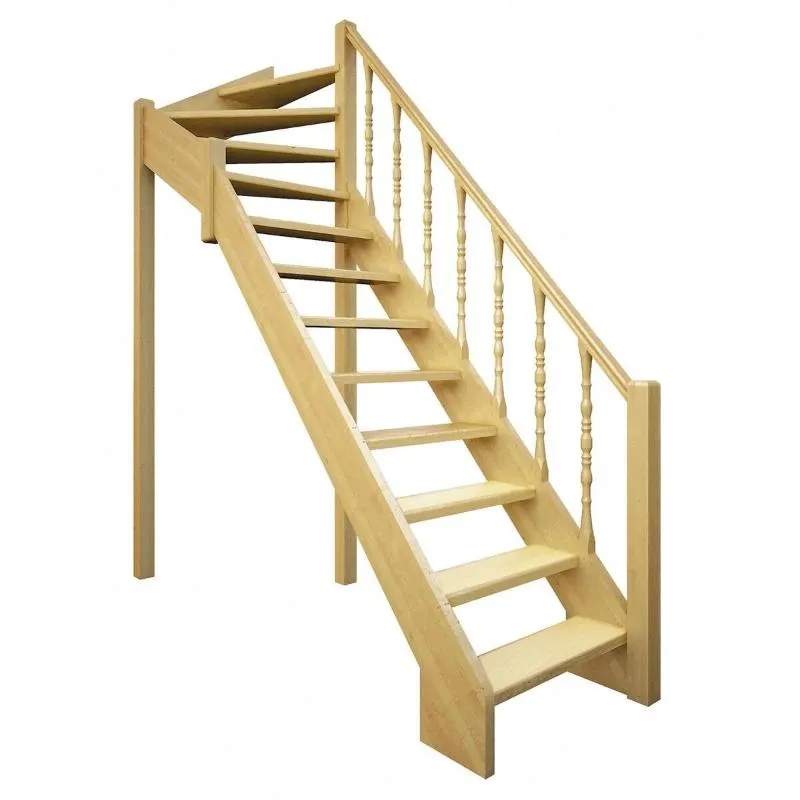Базовый комплект включает в себя деревянные элементы лестницы и ограждения без какого-либо покрытия.