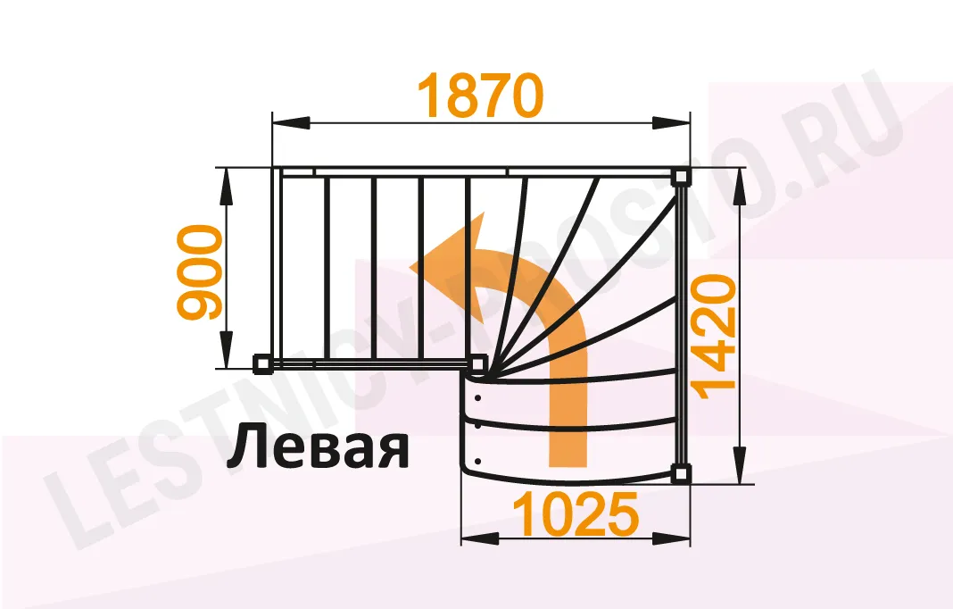 Схема лестницы ЛС-09М/1 с поворотом налево