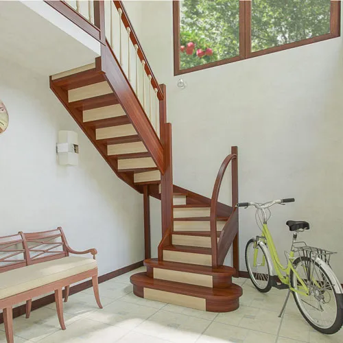 Обратите внимание, базовая стоимость не учитывает стоимость покраски или лакировки. Гнутый поручень первого яруса лестницы в комплект не входит.