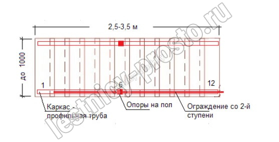 На каждую ступень лестницы приходится 1 стойка.<br>