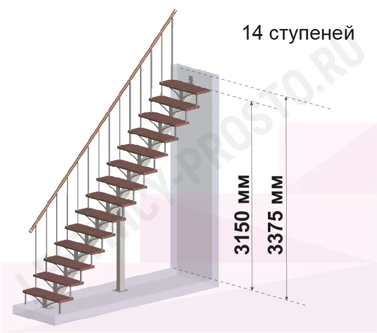 Высота лестницы 3150 - 3375 мм
