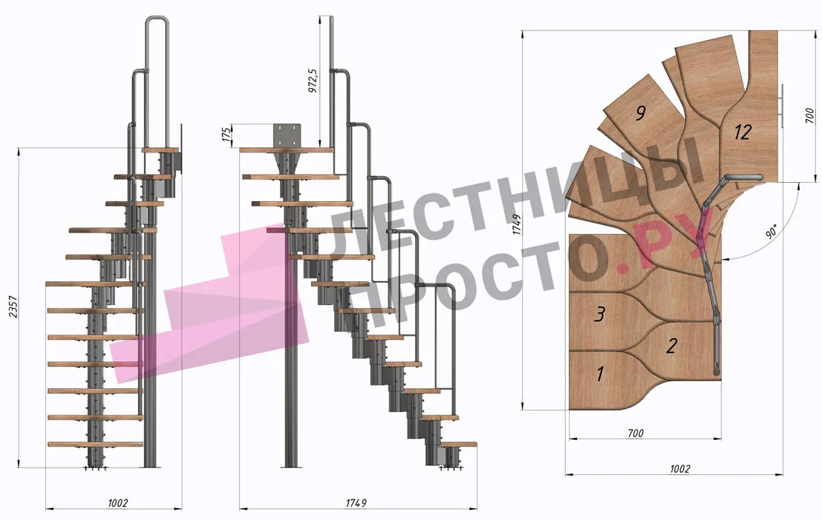 Лестница Prosto Urban Black гусиный шаг 700 мм/Ступени из берёзы мультиплекс
