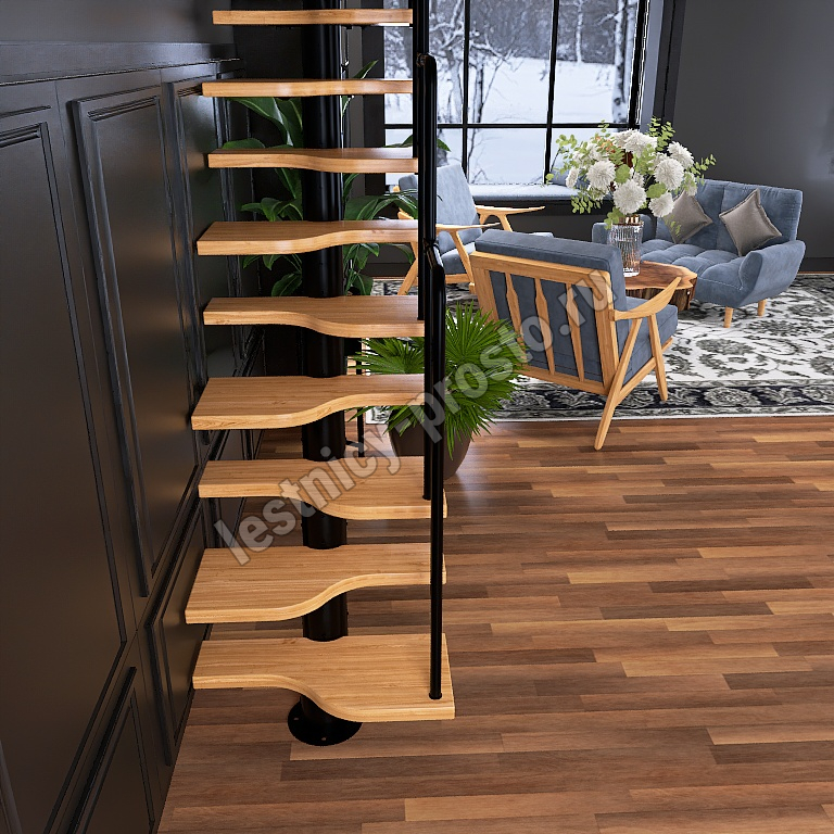 соответствует картинке, но вы не ограничены в его выборе. Лестницу можно приобрести и без ограждения, и с любым другим. Устанавливать на такую лестницу можно почти всё, начиная от классических деревянных балясин и заканчивая эксклюзивными коваными изделиями.