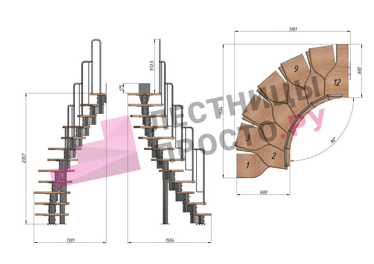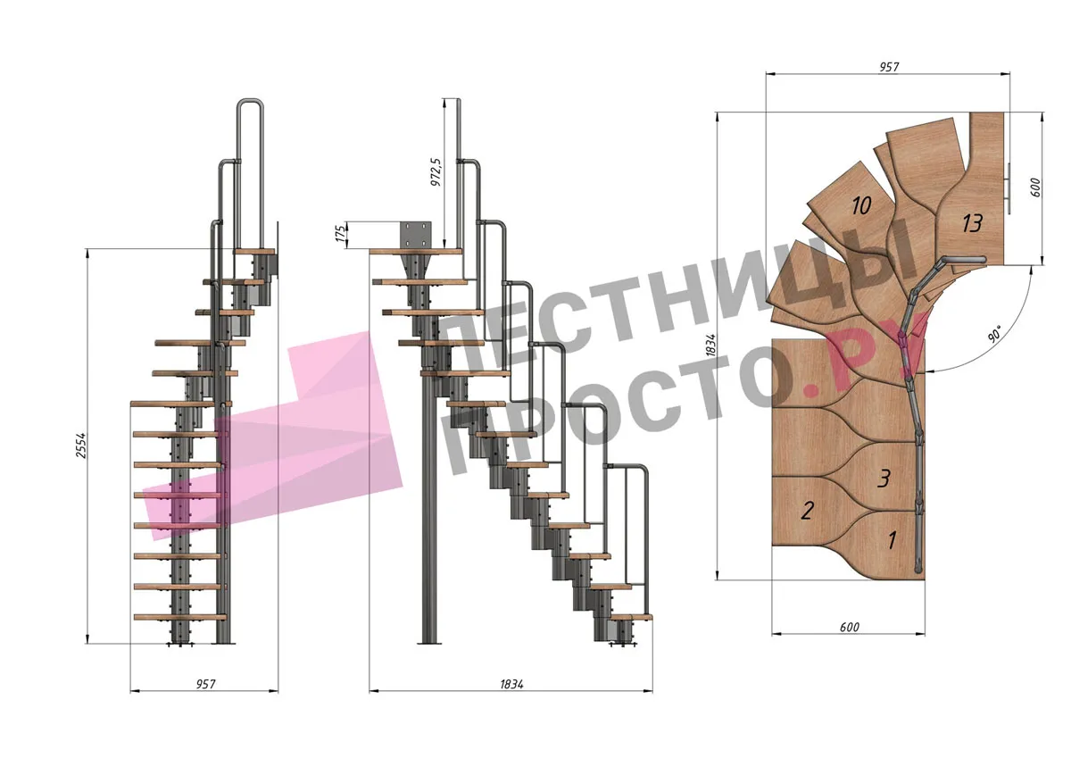 Лестница Prosto Urban Black гусиный шаг 600 мм/ Ступени из берёзы мультиплекс