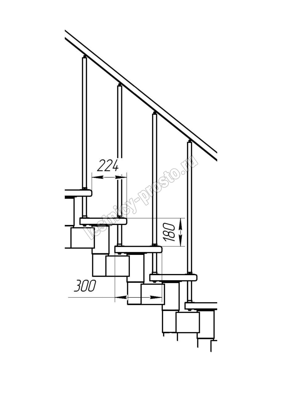 Модульная лестница Фаворит 180 2880-3040, Серый, Бук, Нержавеющая сталь
