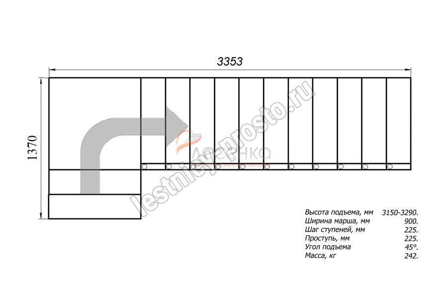 Модульная лестница Статус 225 3150-3290, Белый, Сосна, Нержавеющая сталь