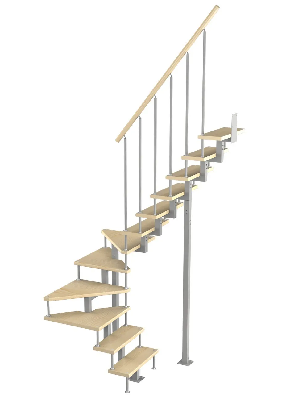 Модульная малогабаритная лестница Эксклюзив 2700-2925, Серый, Сосна, Нержавеющая сталь