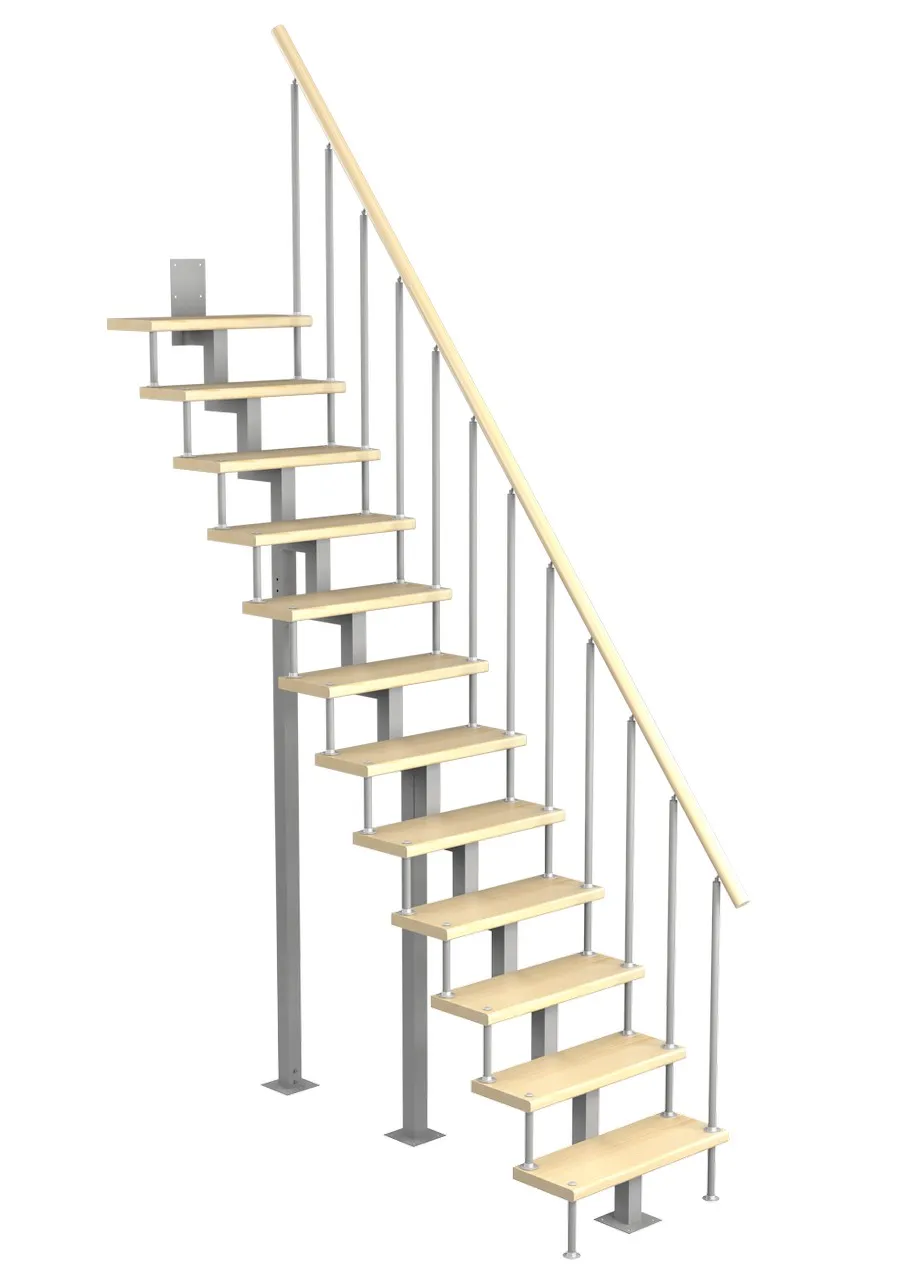 Модульная малогабаритная лестница Эксклюзив 2925-3150, Серый, Лиственница, Нержавеющая сталь