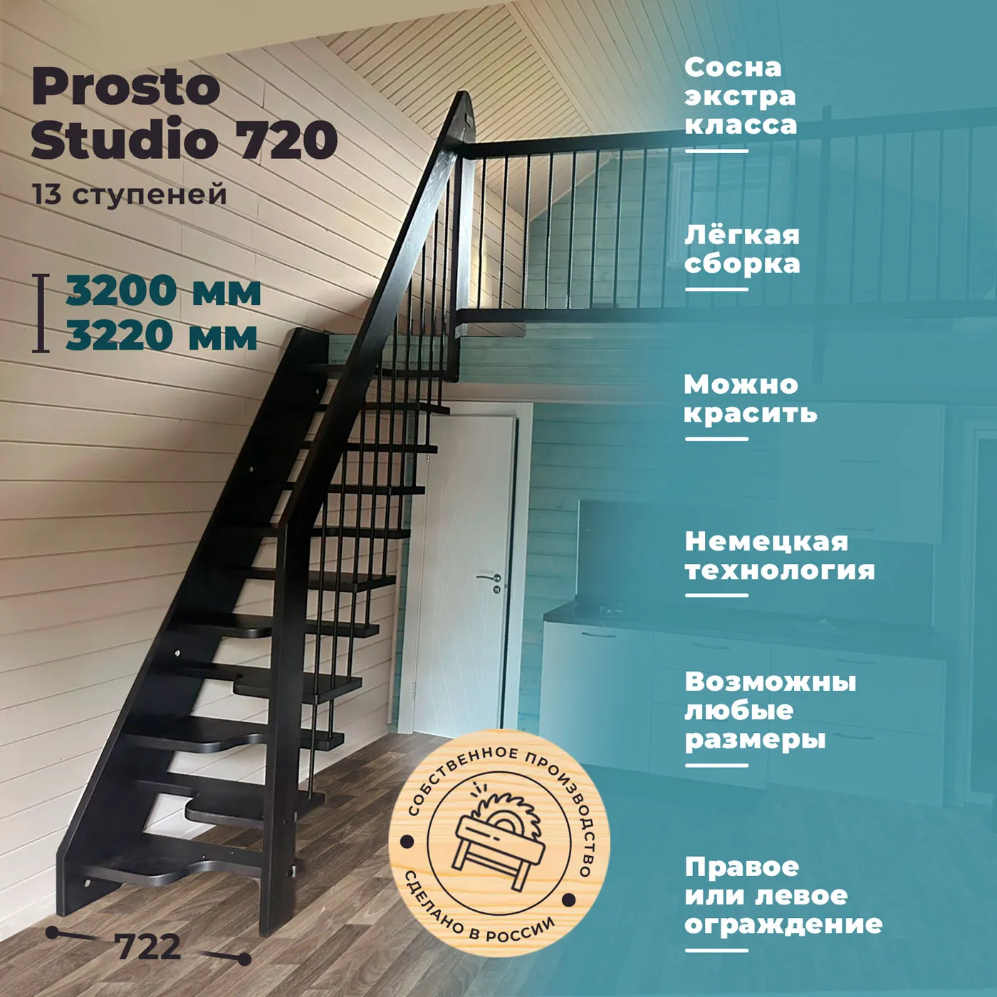 Модульная малогабаритная лестница Линия 2025-2250, Черный, Сосна, Крашеная, Без Ступений
