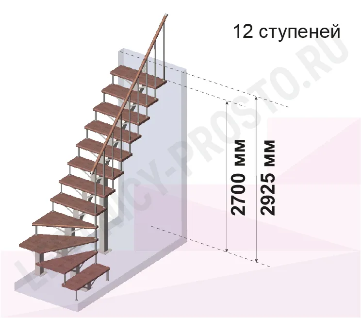 | Лестница PROSTO MONO Г-образная h270 см, ступени хвоя |