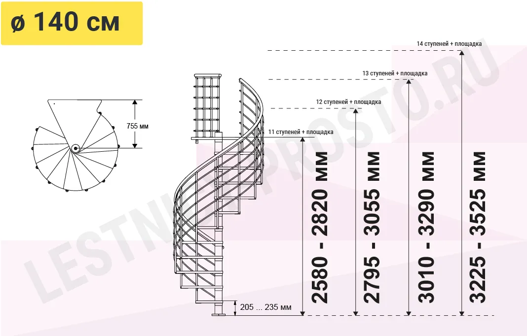 | Винтовая лестница Montreal STYLE серебро, d140 см, h279,5-305,5 см |