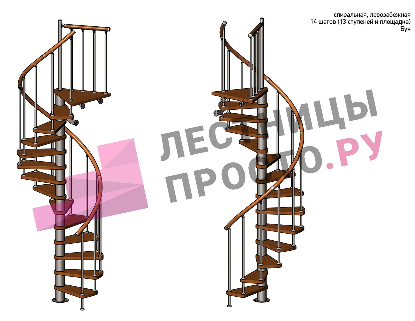 Винтовая лестница Prosto Spiral Black D120см, h303.9-348,1 см, бук