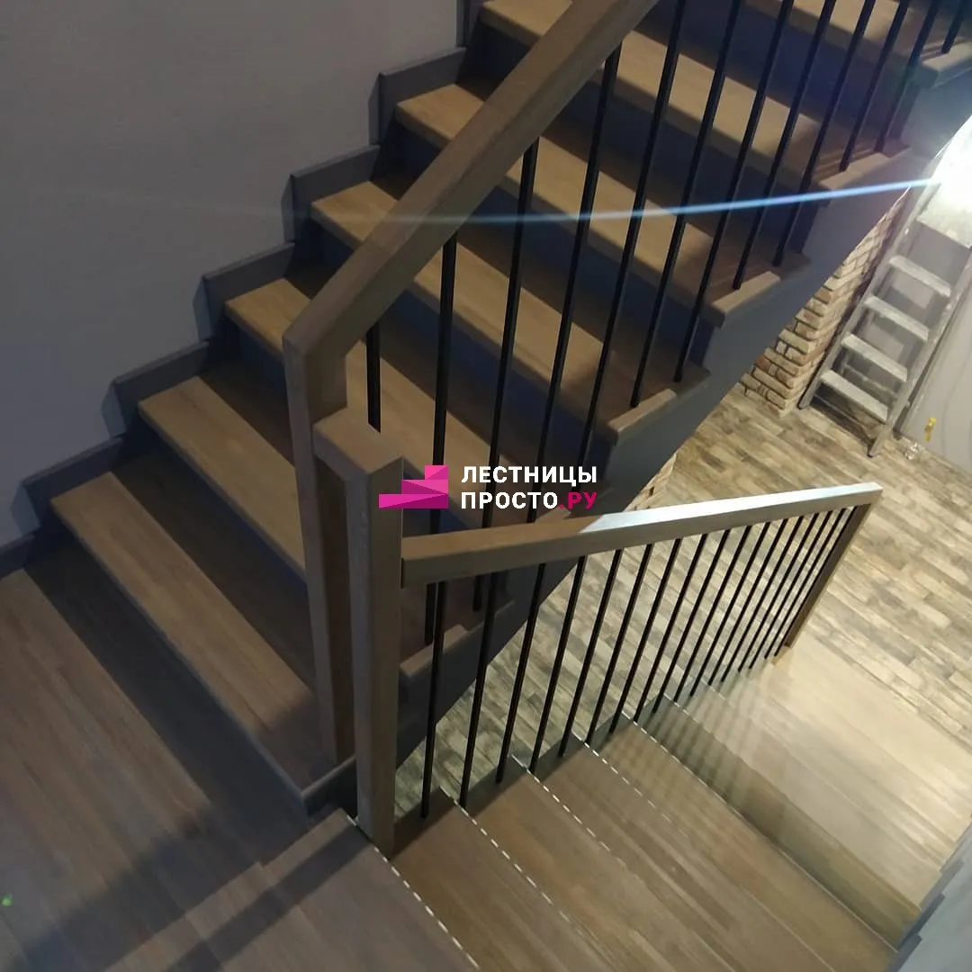 Отделка двухмаршевой бетонной лестницы деревом LP-1-44